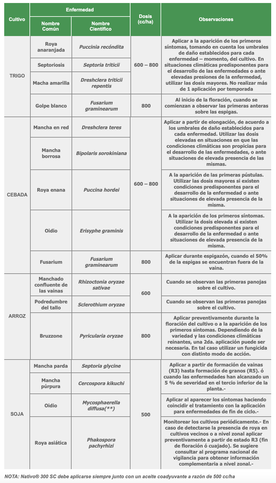 Debido al modo de acción de Nativo® 300 SC, el mismo puede usarse en forma preventiva y/o curativa.